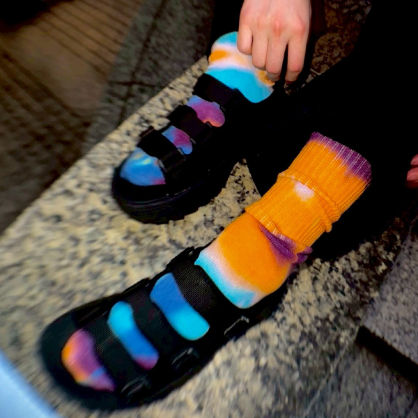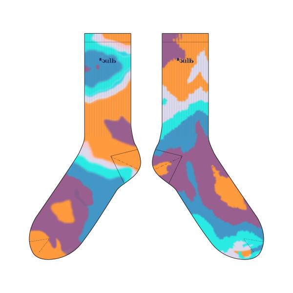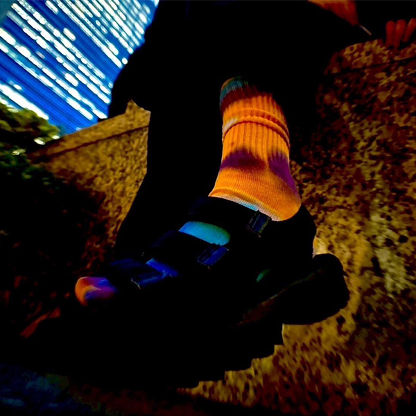 色味や柄に1点ずつ個体差が出るタイダイ染めを施したソックス。