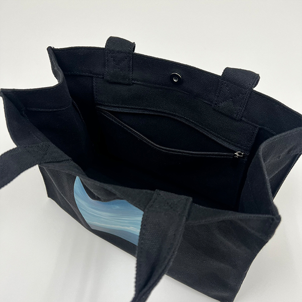 ひより本人が撮影した空のフォトプリントデザインがポイントのバッグ。底マチの長さや生地の厚さ等、細部にこだわったバッグは、コンパクトながら台本やペットボトル等たっぷり収納可能。また、内ポケットはファスナー付きなので、貴重品の管理にも重宝します。