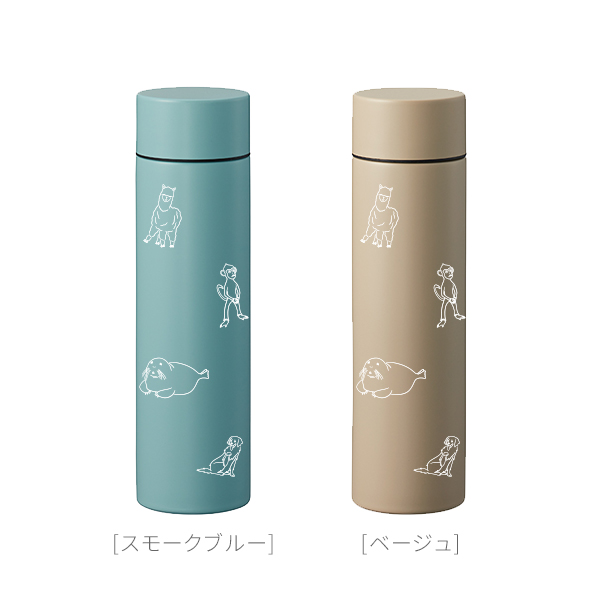 中川描きおろしイラストを全体に散りばめたサーモステンレスボトルは、保冷保温に優れた真空二重構造なのでオールシーズン対応!飲み口にカバーがついており口当たりが優しく、カバンに入れてもかさばらないサイズ感なので、ランチタイムやオフィスなど様々なシーンでご利用いただけます。